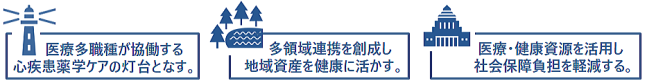故に、薬剤師を軸に6万余店の医療資源である薬局を活かすことで、心不全等心疾患の発症及び増悪の薬学的介入による抑止の実現が可能であると思料し、薬学ケア・フォローアップの充実や多職種・多領域連携の促進に関わる諸活動推進のための包摂的な活動基盤となすべく、この度当機構を発足させるに至った次第です。